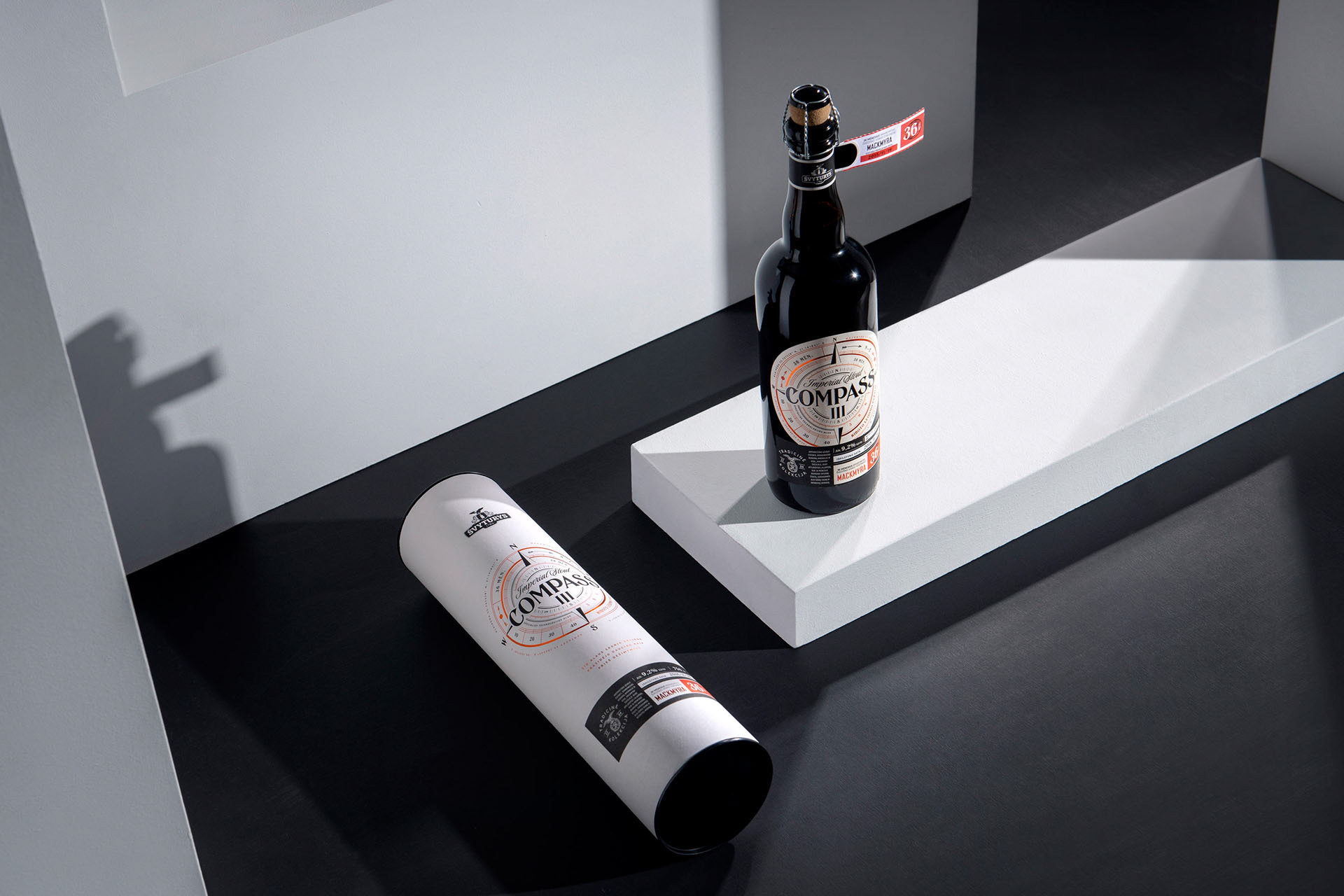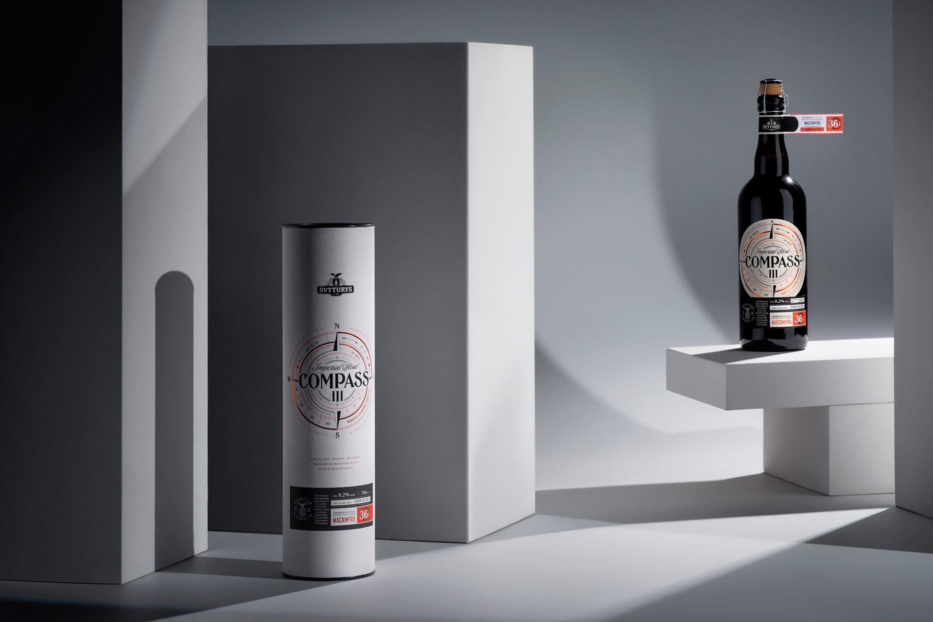 The packaging design for Compass III limited edition beer - 36-month matured beer in Mackmyra barrels from Švyturys.
